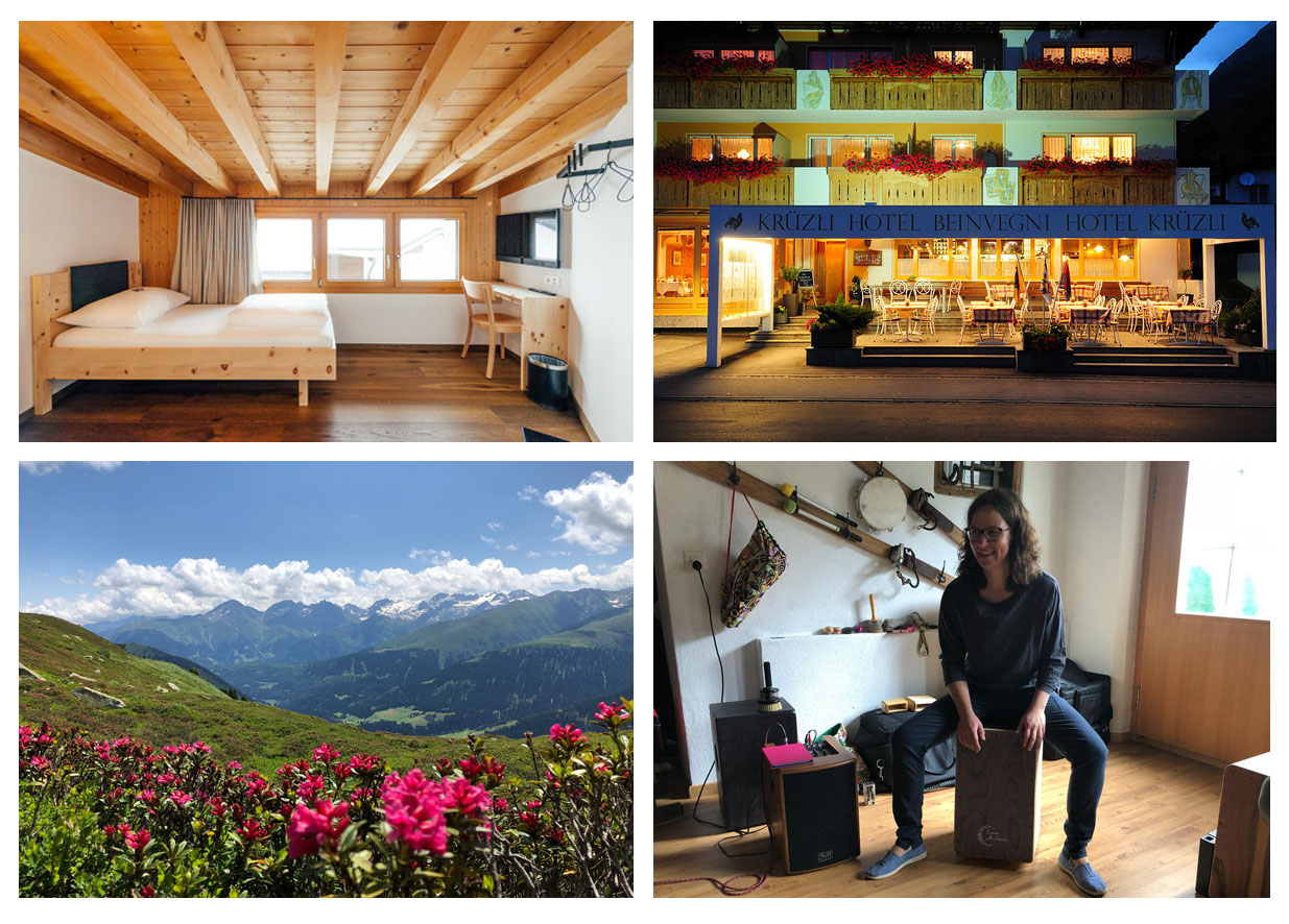 Beim Workshop-Wochenende in Sedrun in den Schweizer Bergen mit drei Cajon-Einheiten können wir uns intensiv der Musik widmen und am Cajon richtig vorankommen. Dabei bleibt genügend Zeit für Ausflüge in die Natur und in die Umgebung.